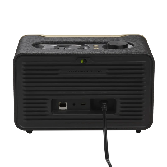 The JBL Authentics 200 is inspired by classic JBL heritage designs for a look that complements any room and fills any space—big or small—with superior JBL sound. And the speaker's premium aluminum frame, custom leather-like enclosure, and reimagined Quadrex grille really show the attention we paid to each visual detail, right down to the JBL signature pattern surrounding the down firing passive radiator.
