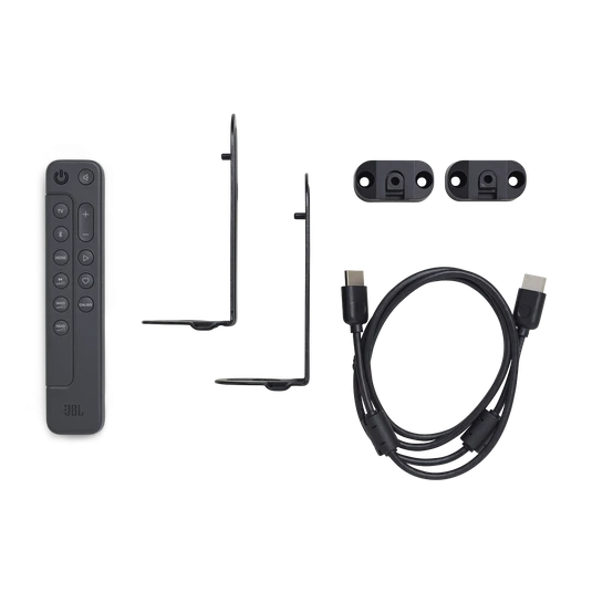 Included components‎Box contents: 1 x soundbar, 2 x speakers, 1 x subwoofer, 1 x remote control with 2 batteries, 1 x HDMI cable, 4 x wall brackets, 1 x start guide