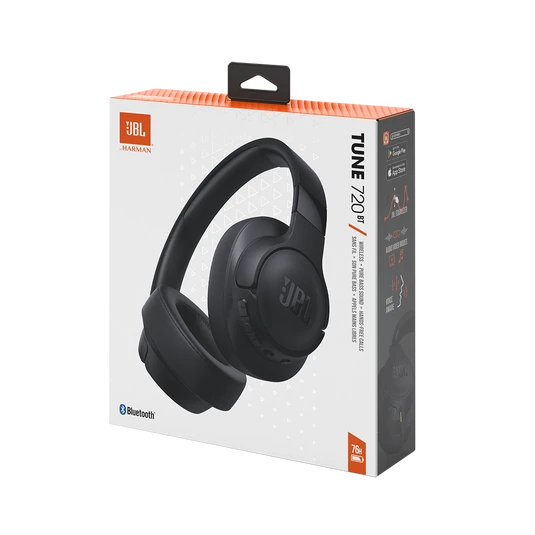 The JBL Tune 720BT headphones stream powerful JBL Pure Bass sound thanks to the latest 5.3 BT technology. Easy to use, these headphones provide up to 76 hours of pure pleasure and an extra 3 hours of battery with just 5 minutes of charge. Download the free JBL Headphones App and customize your sound through the EQ, while Voice Prompts guide you through the headphones features. Manage calls, sound and volume from the earcup, thanks to the convenient button controls. If a call comes in while you are watching a video on another device, the JBL Tune 720BT seamlessly switches to your mobile device, so you never miss a call. Lightweight and comfortable even after hours of listening, the JBL Tune 720BT headphones fold flat in your backpack to follow you everywhere.