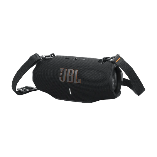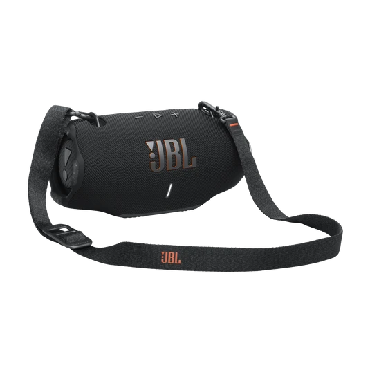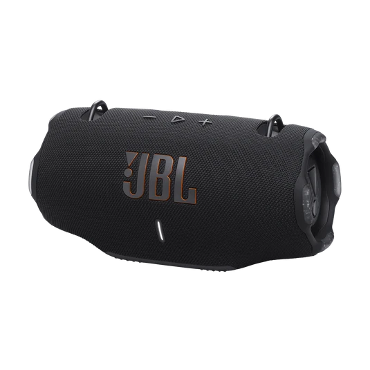 It's time to live loud! The JBL Xtreme 4 portable waterproof speaker delivers next-level massive JBL Pro Sound with amazing dynamics, even at top volume, thanks to two powerful woofers and two tweeters. Dual pumping JBL passive radiators give you deeper bass that moves you. Want to take your music outside? The handy shoulder strap makes it easy, while the rugged rubber bumpers and IP67 waterproof and dustproof rating mean that a sudden downpour or a dunk in the lake won't stop the fun. When it's time to create an even bigger audio experience, pair two Xtreme 4s for stereo sound. Or for your next party, use Auracast to connect the Xtreme 4 with any compatible JBL portable speakers, so your friends lounging poolside will vibe to the same playlist as the ones chatting indoors. 24 hours of playtime and a convenient power bank for your device mean you won't have to recharge until morning. All this, plus it's made with recycled plastic and recycled fabric. The JBL Xtreme 4 brings thrilling sound with you—everywhere.