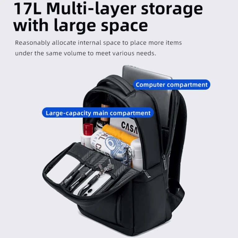 Introducing Golden Wolf’s GB00731 streamlined backpack, a sleek solution for the modern professional. Crafted from composite polyester with polyester lining, this compact backpack features a clean, minimalist design with a spacious laptop compartment for devices up to 15.6 inches. The ergonomic construction includes a breathable back pad with gravity conduction and buffer protection, shock-absorbing shoulder straps with secure adjustment buckles, and a discreet anti-theft back zipper pocket for enhanced security during commutes.