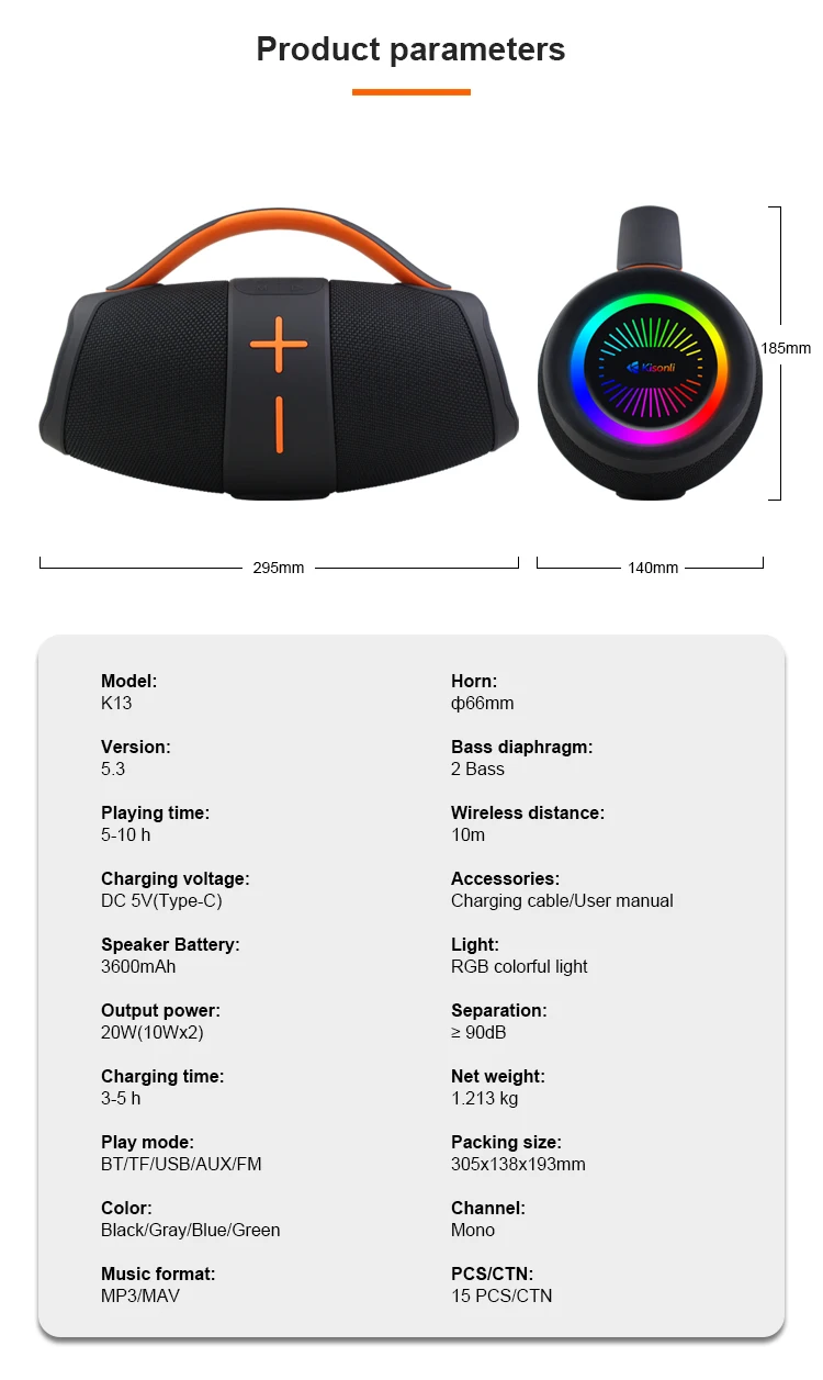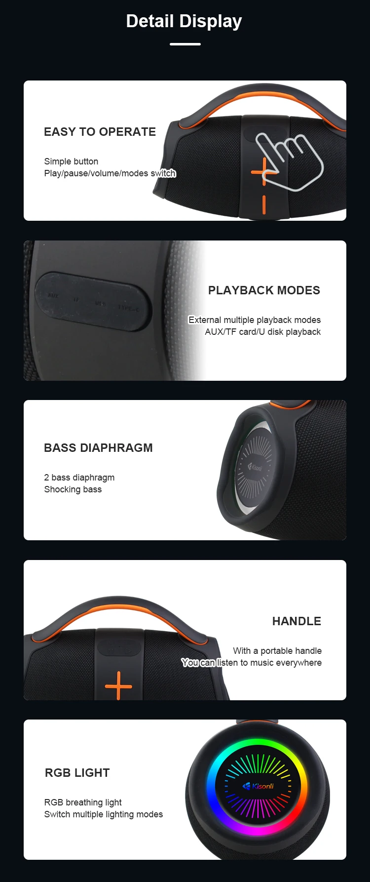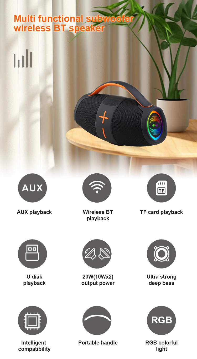 Portable Wireless Speaker Bass RGB for Powerful Bass 3600mAh Bluetooth Speaker