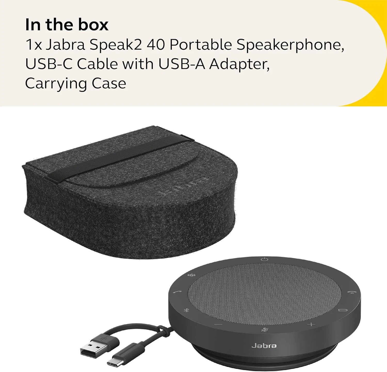 | Included Components | Jabra Speak2 40, Felt Pouch, Safety Information & Declarations leaflet, Warranty leaflet |
