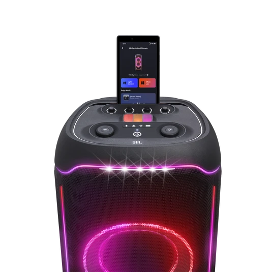 The JBL PartyBox Ultimate can cover a massive space—we're talking two basketball courts—with superior Original JBL Pro Sound. Featuring two drivers and mid range speaker to deliver louder sound. Dual tweeters and a pair of subwoofers means there's going to be more than enough bass for even the most dedicated fans, while Dolby Atmos* provides immersive 3D spatial effects. This is the kind of thunderous sound you'll not just hear, but feel. * A subscription to a high definition music service is required in order to listen to immersive music in Dolby Atmos. Please check subscription fees in your region.